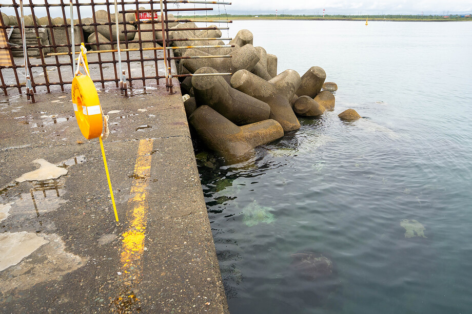 ケーソンの繋ぎ目は流れが発生しやすいポイント。20cmクラスのエゾメバル(ガヤ)がエサを待ち構えていることが多い。