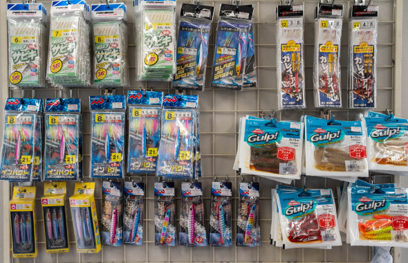 - 管理棟にて、仕掛け・エサ・バケツなどの小物類・氷などを販売