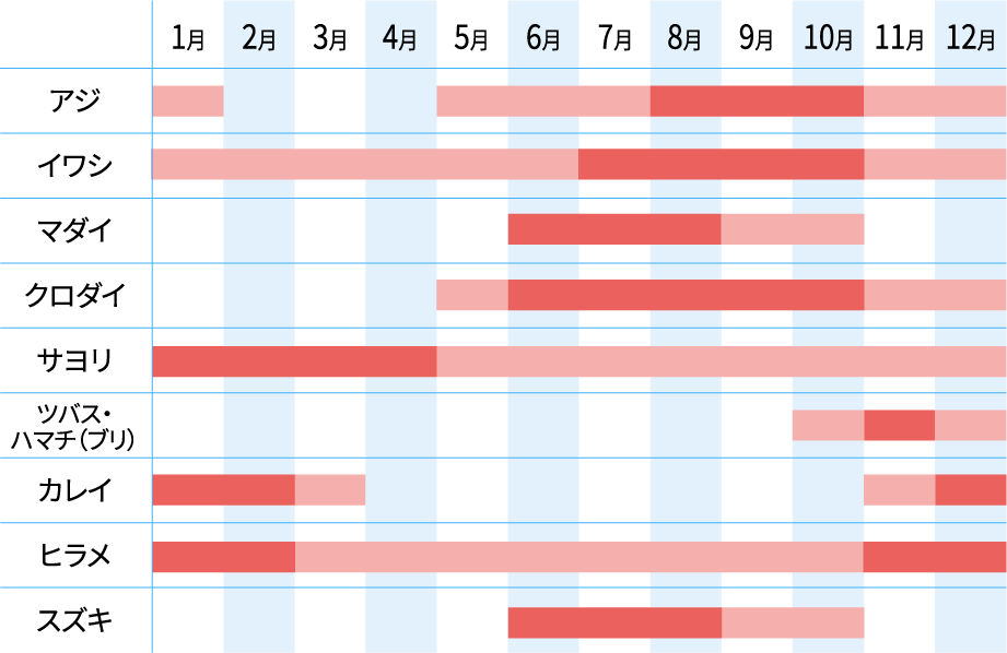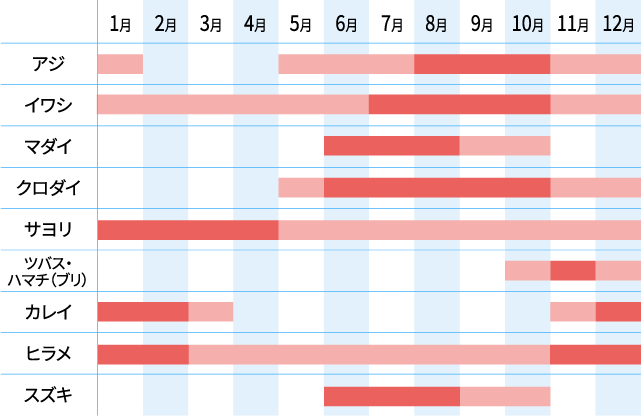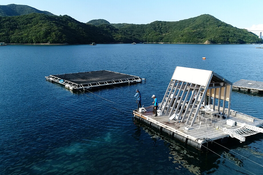 鳴門海峡からアジやイワシといった小魚が回遊してくるのも、この海域の大きな特徴。そして、その小魚を追って、ヒラメやスズキ、青物といったフィッシュイーターもまた、筏の周りへと回遊してくる。