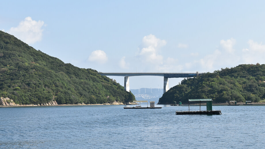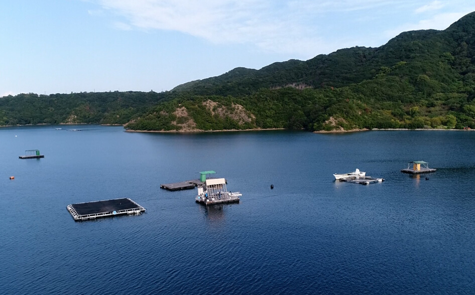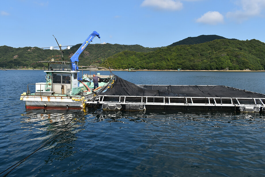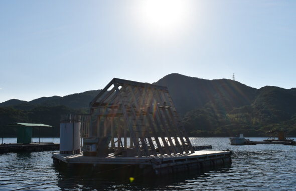 4.ウチノ海の穏やかな景色を見ながら船で筏に移動 -