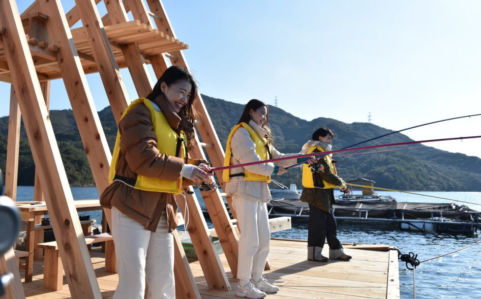 このウチノ海の筏釣りの拠点の一つが、撫佐(むさ)漁港である。この地域は海や漁村の資源を活用する「海業(うみぎょう)」を推進しており、地元の渡船が釣り筏のサービスを提供している。