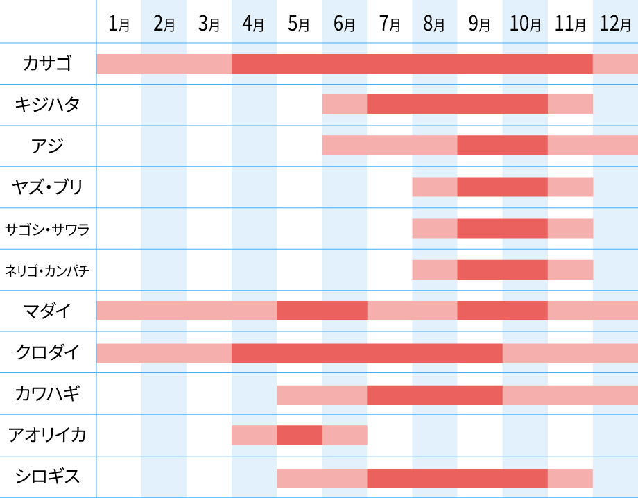 日本海と瀬戸内海を結ぶ関門海峡に面しているため、潮通しは抜群。季節に応じてアジ、青物、マダイ、アオリイカといった多彩な回遊魚が期待できる。