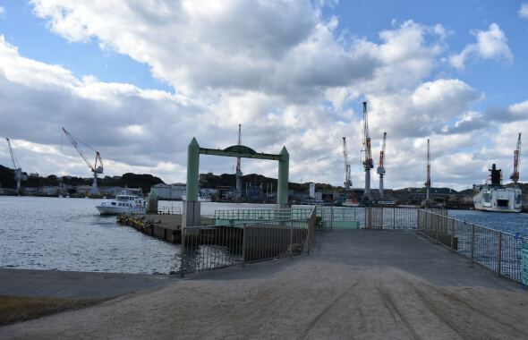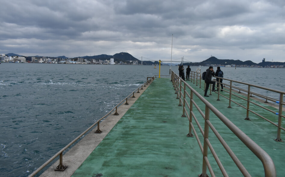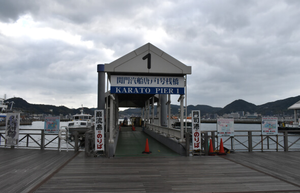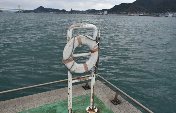 6.関門海峡の雄大な景色を眺めながら、10分ほどの船旅で到着 -